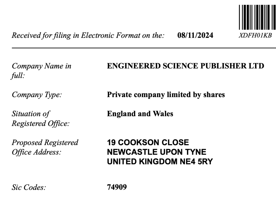 From public business records and tax statements we know that Engineered Science Publisher LLC was first registered in March 2018 in Knoxville, Tennessee (remember where Guo was before he came to Northumbria University a couple years ago? At the University of Tennessee in Knoxville). Could be a another coincidence, right?