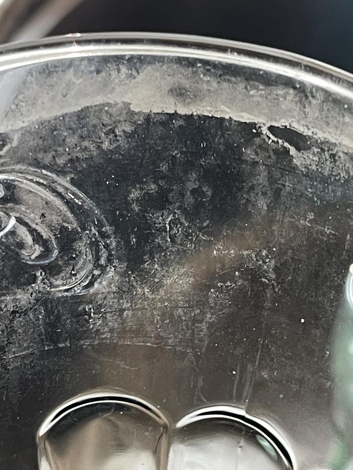 In modern, very water-efficient machines, these precipitates may not be particularly diluted and can quickly form thick films. (And though he suggests otherwise, this can be blamed on the removal of phosphates from detergents; though, in my experience, Cascade’s phosphate-based formula would leave a different kind of film at lower wash temperatures anyway.)