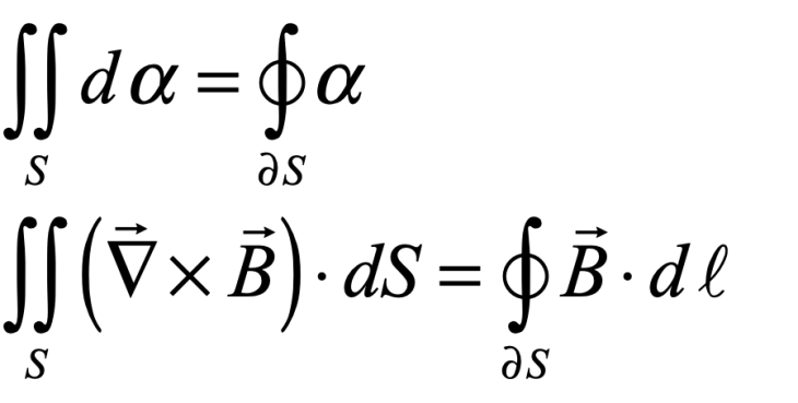 Everyone who has taken classes in physics or engineering knows that the most magical of all vector identities (and there are so many vector identities) are Green’s theorem in 2D, and Stokes’ and Gauss’ theorem in 3D. These theorems have the magical ability to take an integral over some domain and replace it with a simpler integral over the boundary of the domain. For instance, the vector form of Stokes’ theorem in 3D is