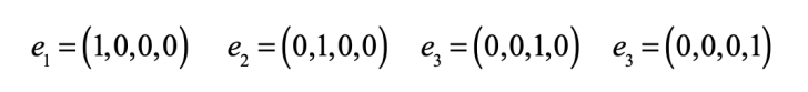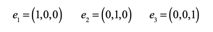 It is harder to think in four dimensions and higher, but even here it is a simple extrapolation of lower dimensions. Consider the basis vectors spanning a three-dimensional space consisting of the triples of numbers