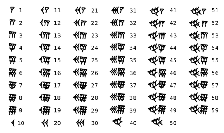 Today, we are so accustomed to place-value notation that it is hard to recognize how ingenious it is—how orders of magnitude are so easily encompassed in a few groups of symbols that keep track of thousands or millions at the same time as single units. Our own decimal place-value system is from Hindu-Arabic numerals, which seems natural enough to us, but the mathematics of Old Babylon from the time of Hammurabi (1792 – 1750 BCE) was sexagesimal, based on the number 60.