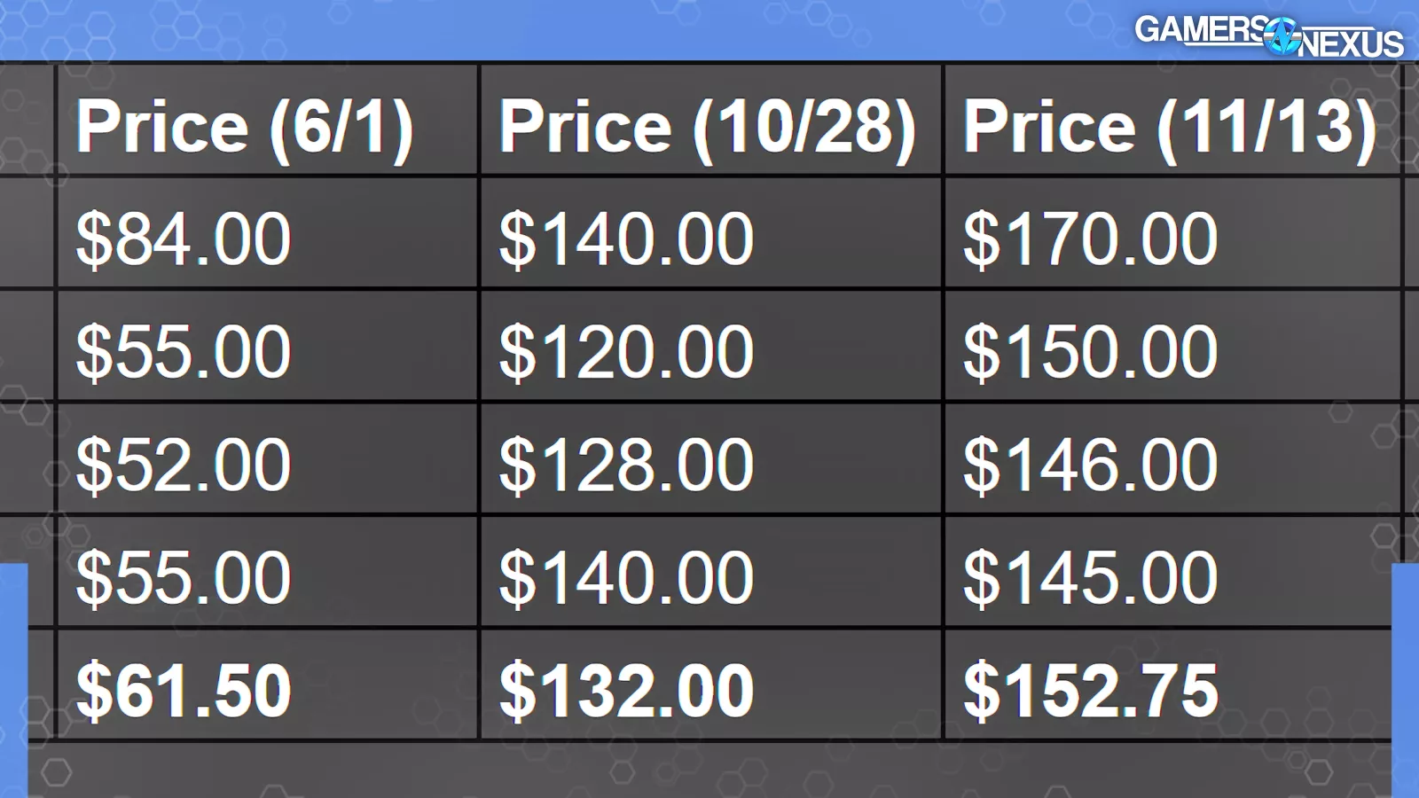 Corsair’s Vengeance RGB kit climbed in price from $84 to $170, or 102%.