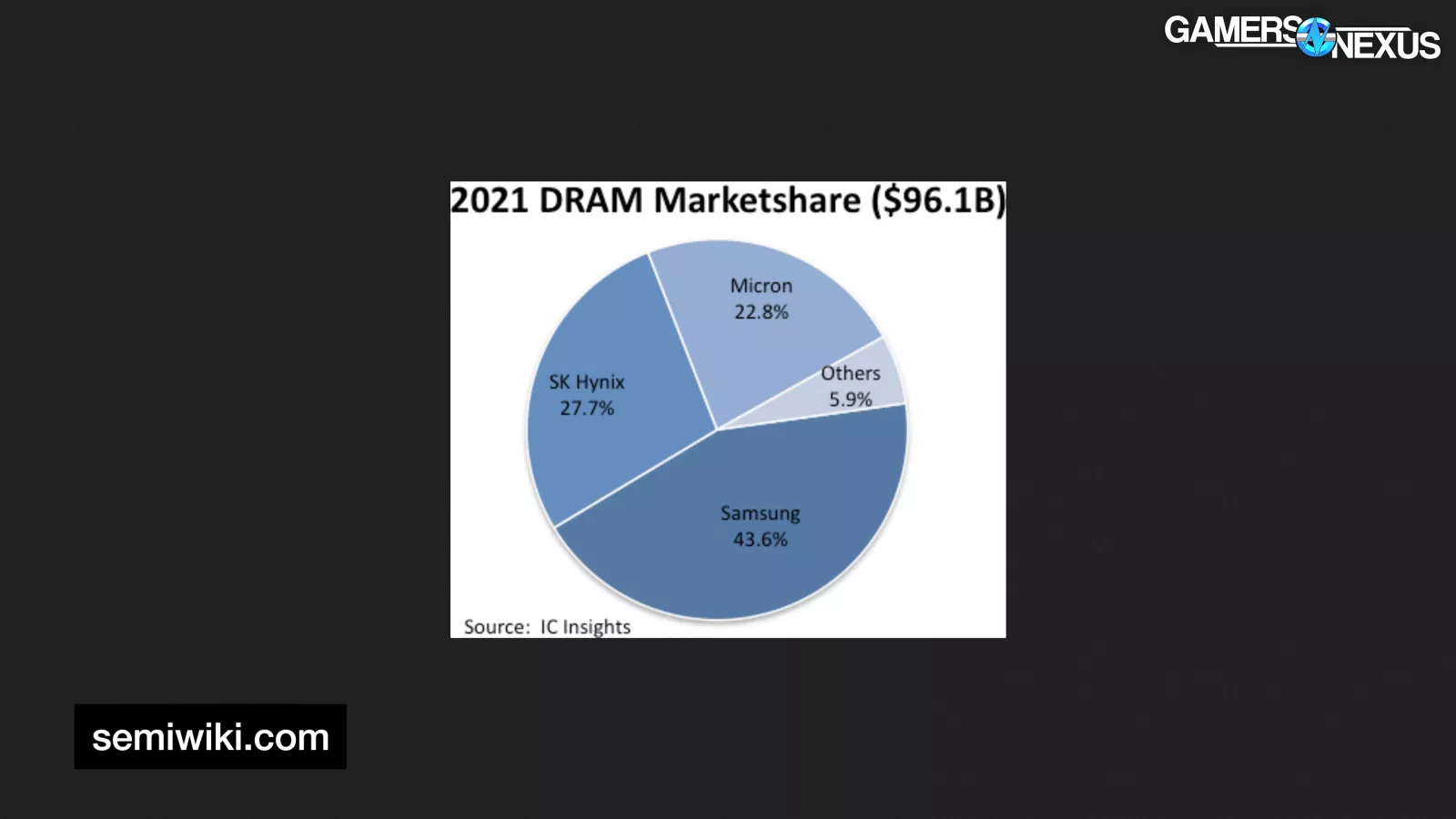These manufacturers buy the memory silicon from one of 3 common suppliers: Samsung, SK Hynix, or Micron. IC Insights’ 2021 report indicated only 6% share for others.