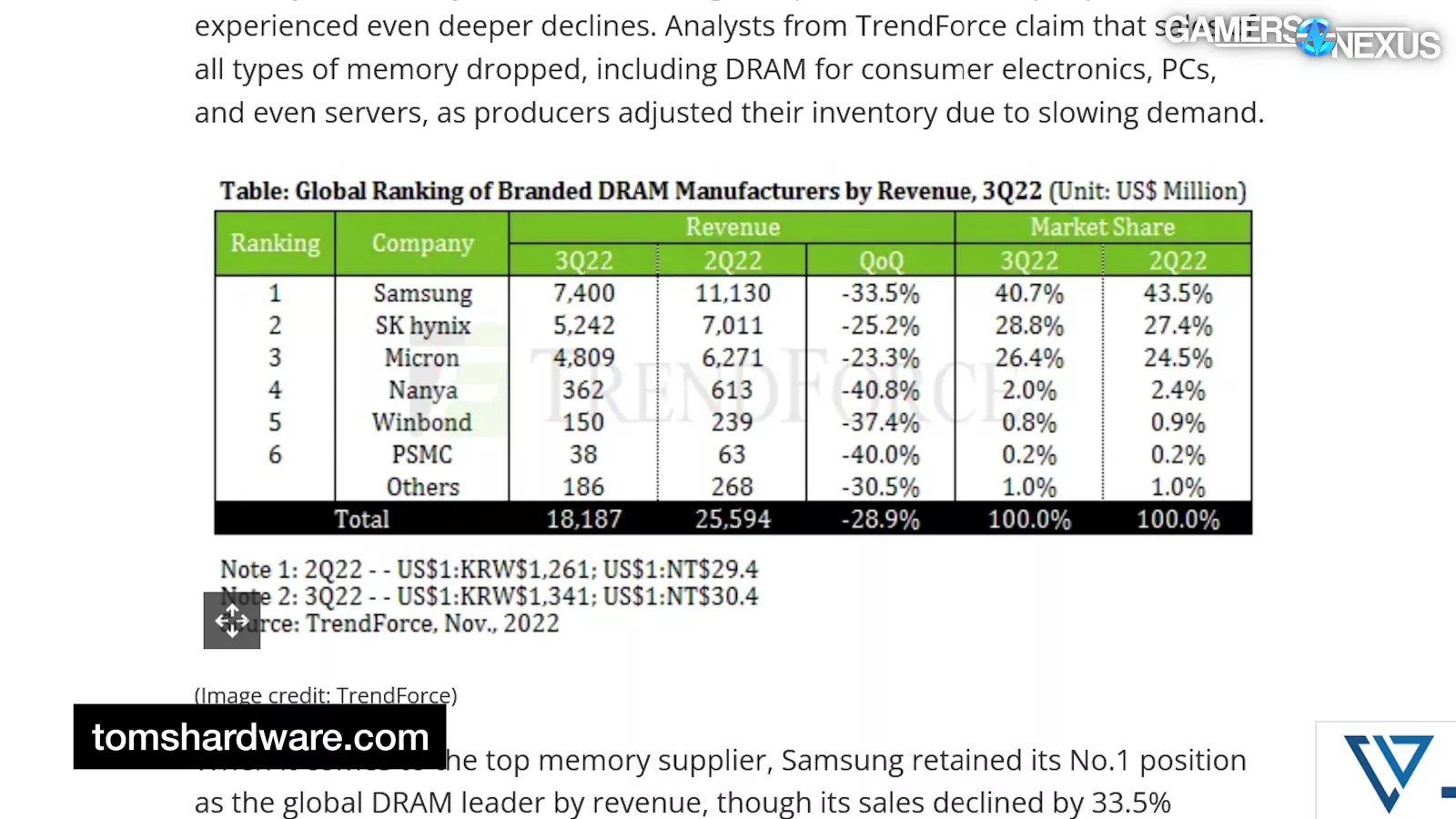 The most significant cuts occurred in late 2022 and early 2023, around the same time global DRAM revenue decreased by an unprecedented 30% QoQ in Q3 2022.