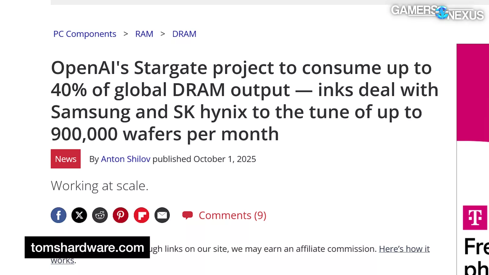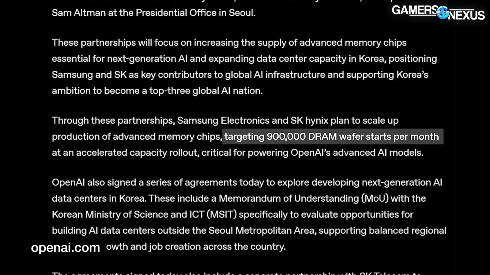 In OpenAI’s partnership announcement with Samsung and SK Hynix, the company described plans to target “900,000 DRAM wafer starts per month,” which Tom’s Hardware notes represents around 40% of the total DRAM output, globally.