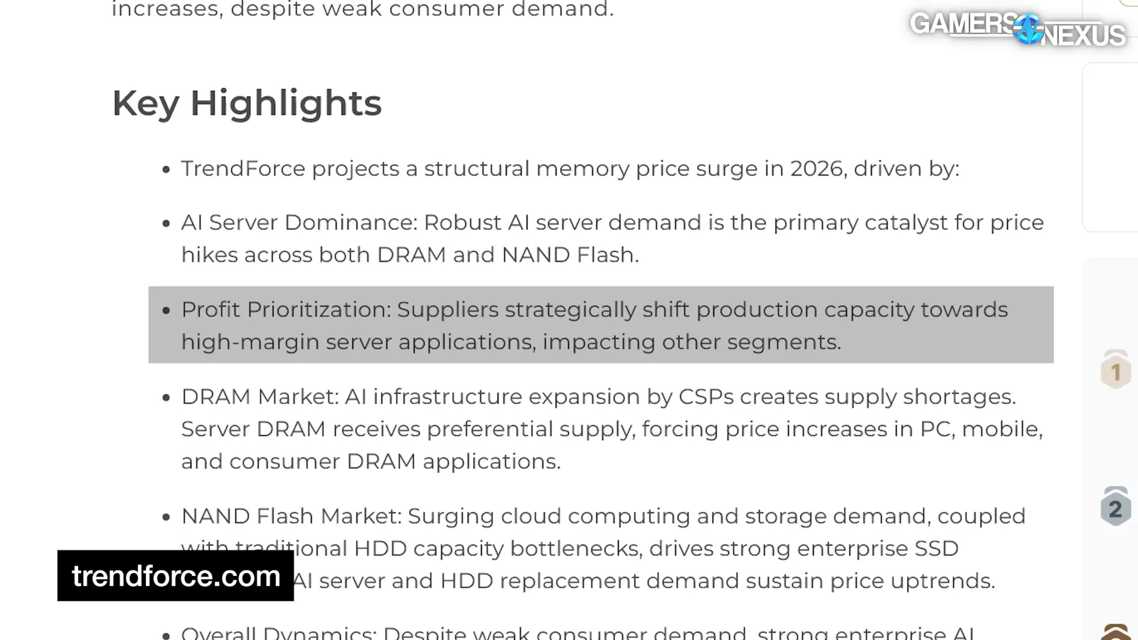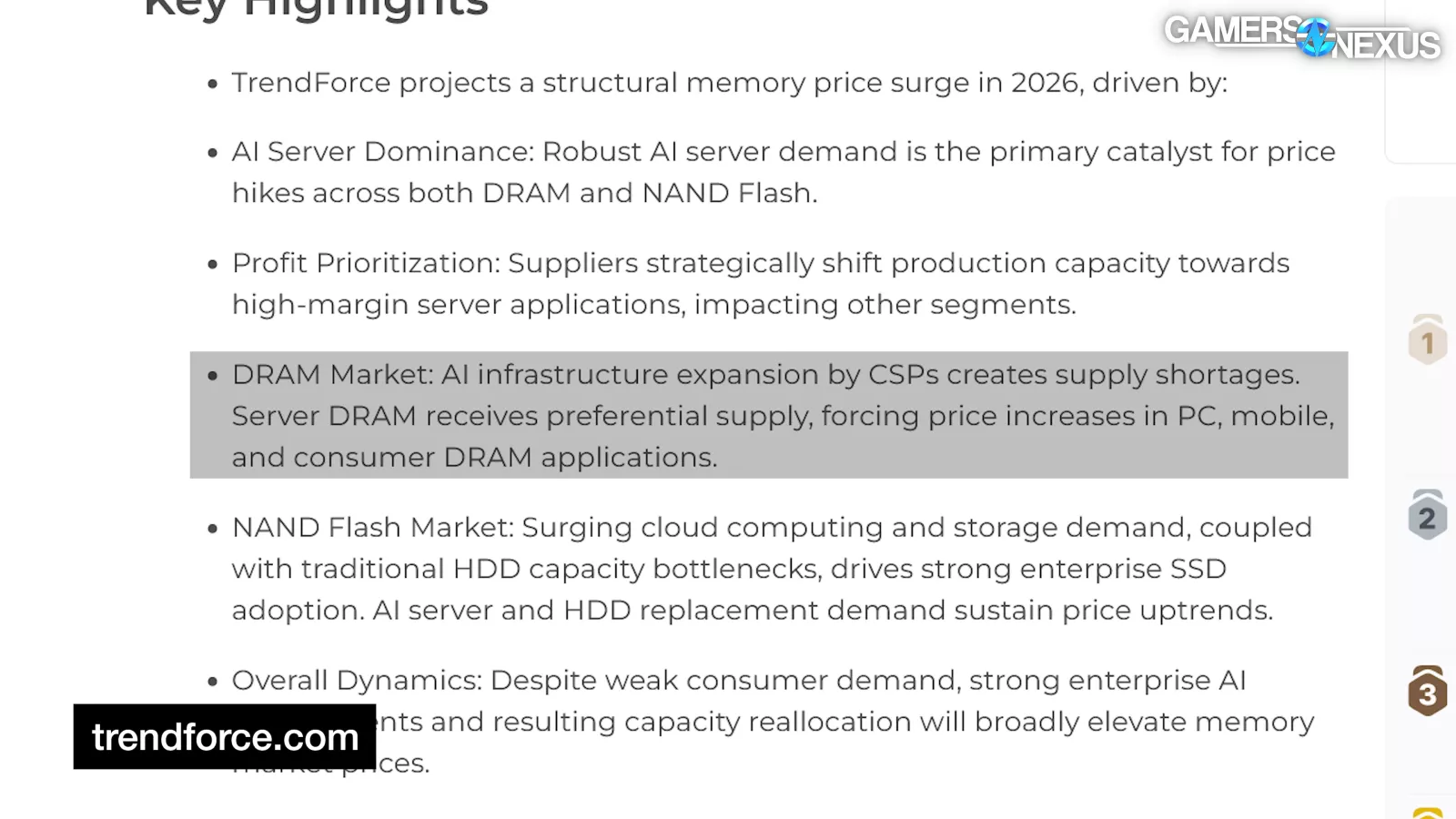 Now, the manufacturers have begun shifting DRAM supply resources towards AI and server uses rather than desktop. It's unlikely that prices will improve in 2026. And finally, industry leaders are indicating that NAND price increases will follow in a similar fashion.