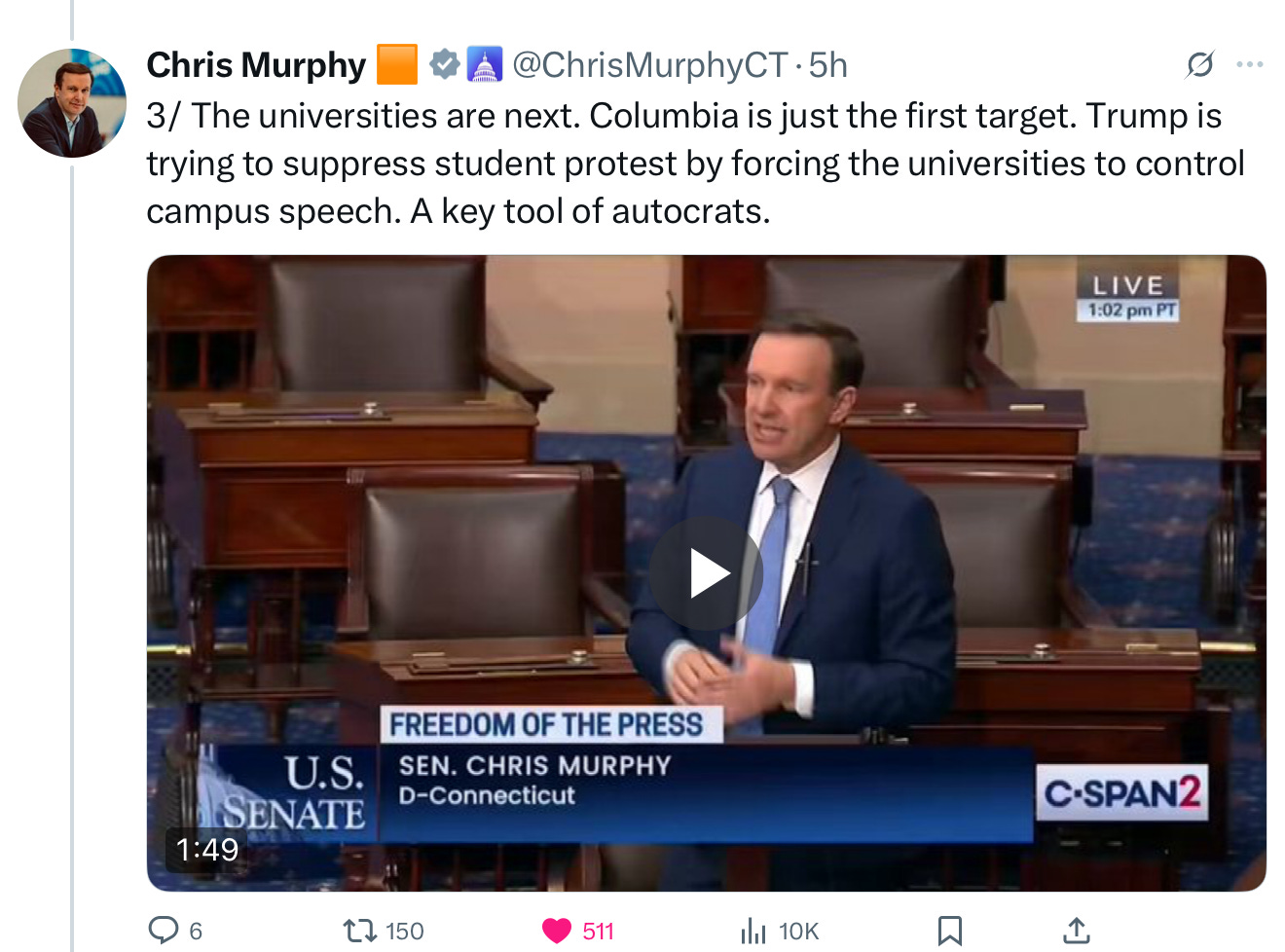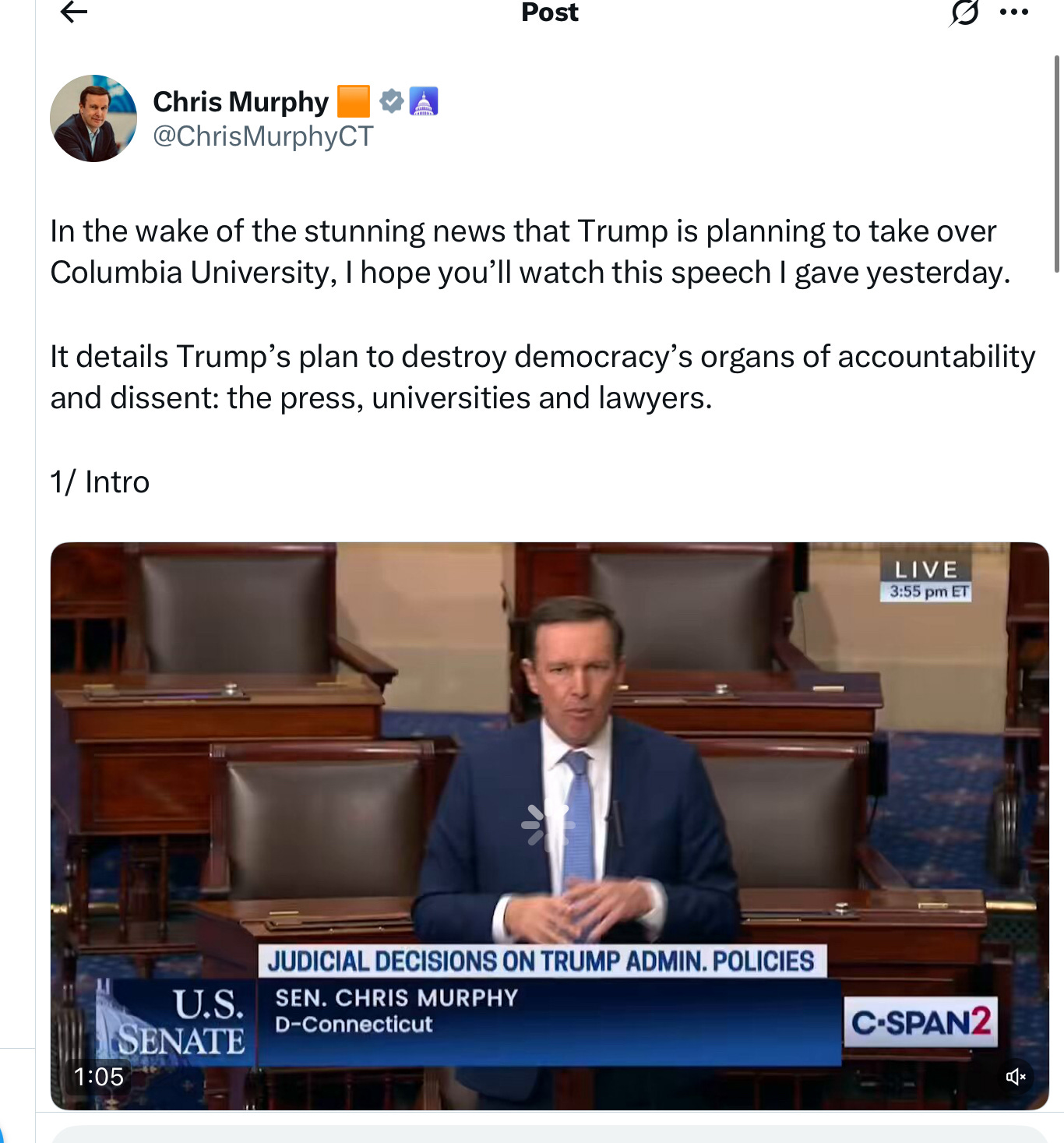 Connecticut Senator Chris Murphy reads this the same way I do, in a thread worth reading on X: