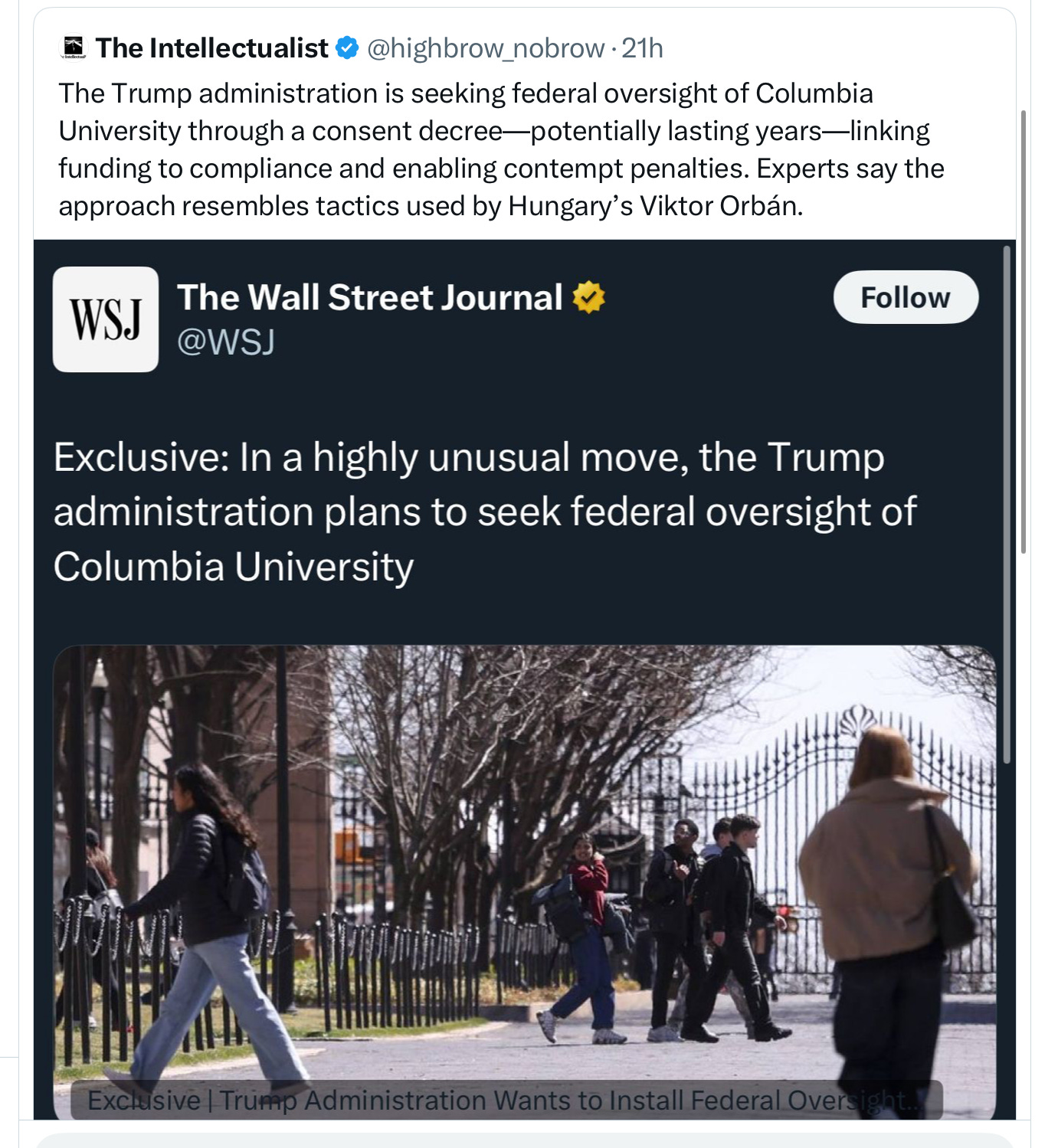 In the midst of the tariffs, an even bigger story is brewing: Trump is attempting to take over American Universities. My jaw dropped when I read this one.