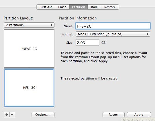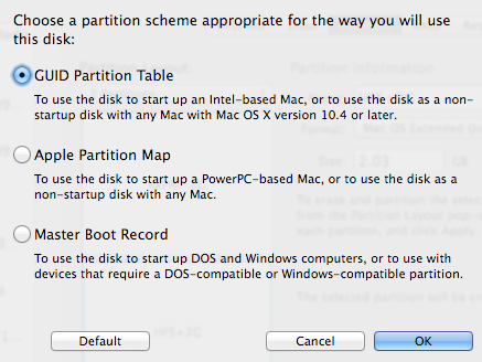 - 2nd partition: Mac OS Extended (Journaled), i.e. HFS+
