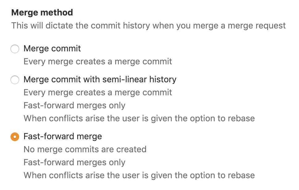 The fast-forward merge strategy is the default strategy employed by git when the base branch is the direct ancestor of the head branch.