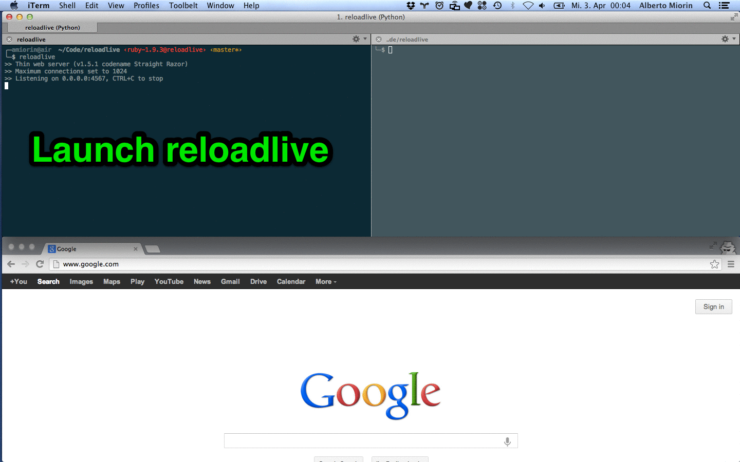 Reloadlive is a command line tool that renders your markup files in your browser without hitting the reload button.