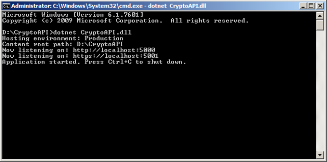 First you run CryptoAPI server (the easiest way is dotnet CryptoAPI.dll) and afterwards you run CryptoFront.exe, which is the frontend.