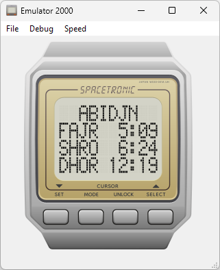 For Spacetroniс watch, I made a full firmware dump, but part of the code and the list of cities were stored on an external EPROM(?), which I could not dump.