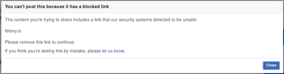 A friend of mine (@ROODAY) attempted to share a link to https://felony.io/ in a group chat.