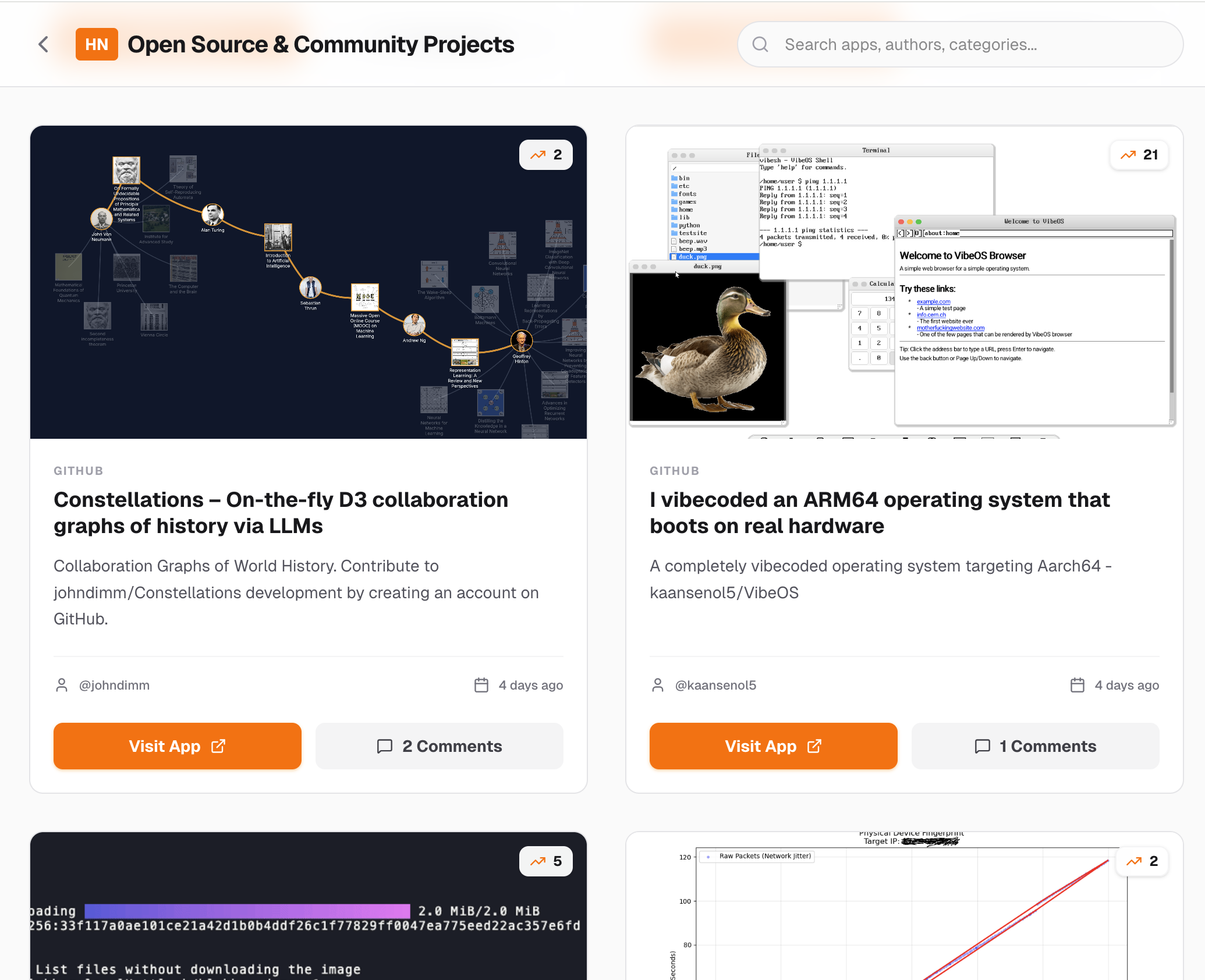 - Direct Links: Easy access to both the live application and the original Hacker News discussion.