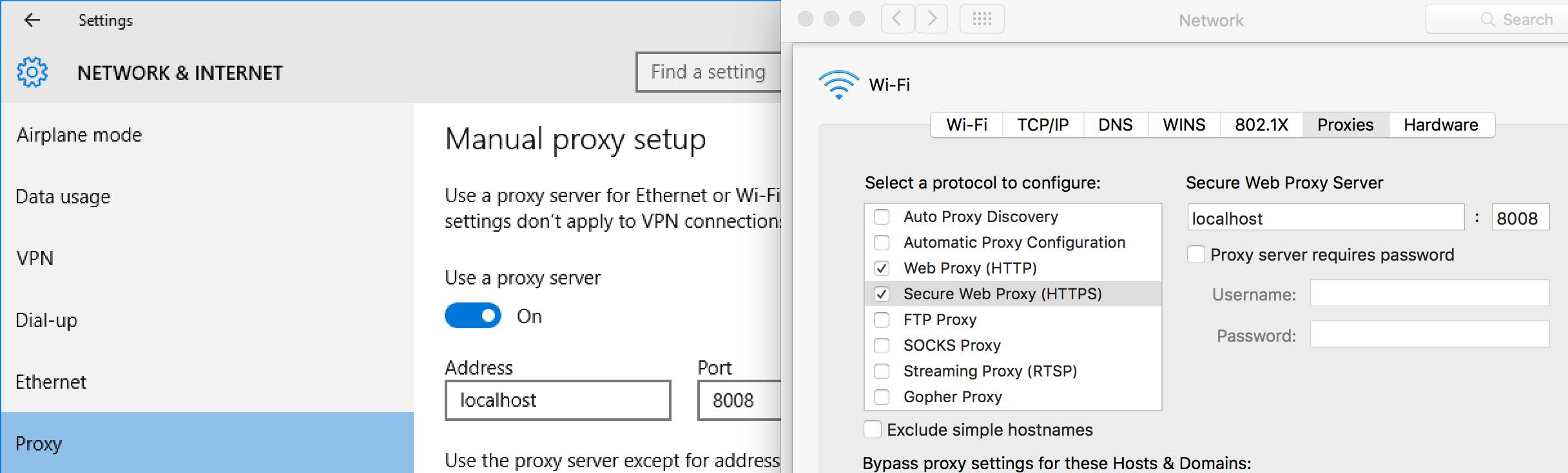 System Preferences → Network → Advanced → Proxies → Web Proxy (HTTP) - on Windows -