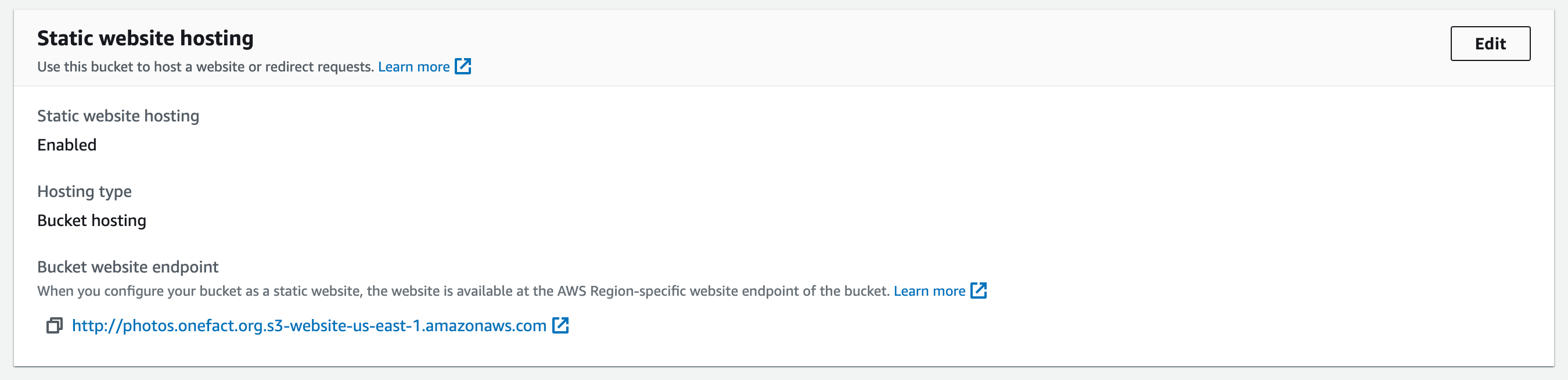 - [as-needed] to edit, add, delete individual shortlinks, click on "Edit properties" at the bottom of the page for the bucket management screen: https://s3.console.aws.amazon.com/s3/buckets/photos.onefact.org?region=us-east-1&tab=properties