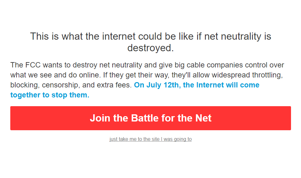 Slowlane is a simple script that imitates a (what could be in the future) ISP "package upgrade" page. This was made for the Battle for the Net July 12th protest. It adapts to the user's ISP, if possible. (demo!)