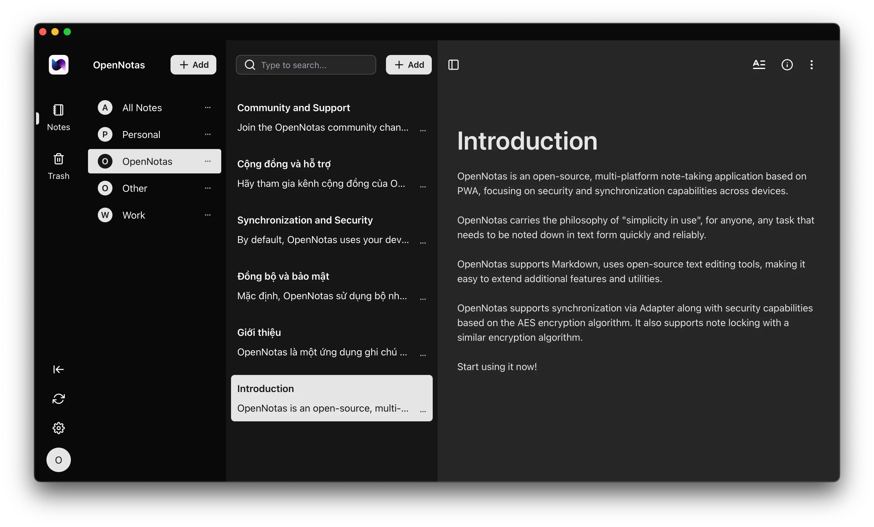 OpenNotas is an open-source note-taking application, cross-platform based on PWA, focusing on security and device synchronization. Follows the philosophy of "simplicity in usage", catering to anyone who needs to quickly and reliably jot down their notes in text format.
