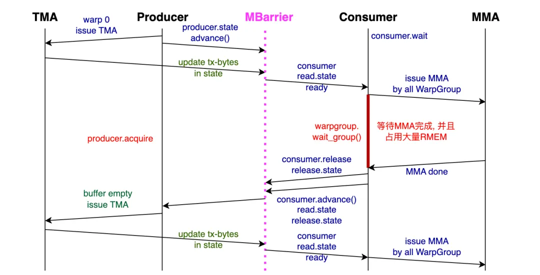 It's easy to make mistakes if synchronization is not handled properly. However, Nvidia has introduced many pipeline abstractions here, which helps avoid many errors. Paired with TMEM's memory management and allocation mechanism, the complexity of managing TMEM in a multi-threaded parallel context is reduced through alloc/dealloc.