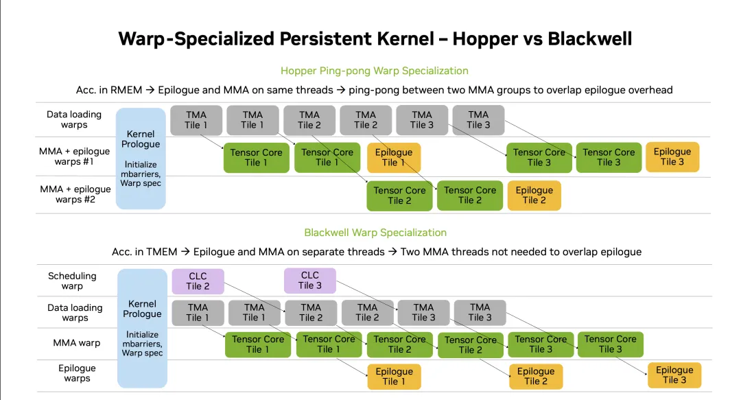 First, TMA/MMA descriptors are now basically generated by the host CPU. Although there is NVLink C2C between the host CPU and Rubin, the latency is still very high. Another reason is that issuing TMA and UMMA and scheduling the cluster only requires a single thread, so there is no need to run it on a CUDA Core.
