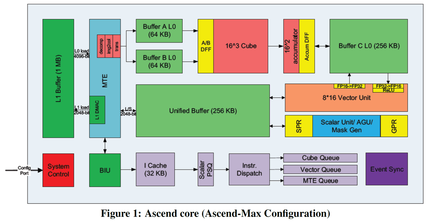 Then you might say, "Hey, isn't this very similar to Huawei's Ascend 910? It also has a scalar AI CPU, a SIMD Vector Core, and a Tensor Core."