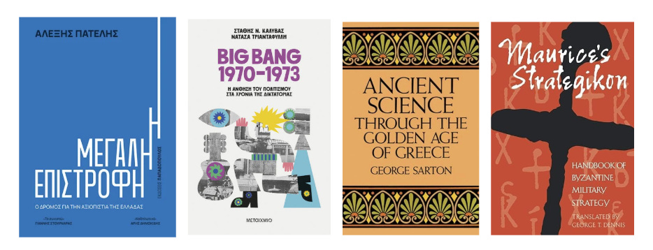 I have selected four books that I recently read and found very interesting. They correspond to four distinct periods of Greece’s history: modernity (today), Junta era, Byzantium, Ancient Greece. Two are written in Greek, two in English. Each touches upon a different domain area: economics, culture, science and strategy.