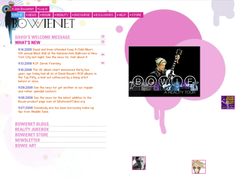 BowieNet didn’t last forever. The full-package experience was, realistically, more than people expected even from one of the world’s biggest musicians. In May 2006, the ISP was quietly shutdown, with the BowieNet web presence slimmed down to a website and fanclub style experience. In 2012, this too came to an end, and DavidBowie.com was retooled to a more typical artist website of the modern era.