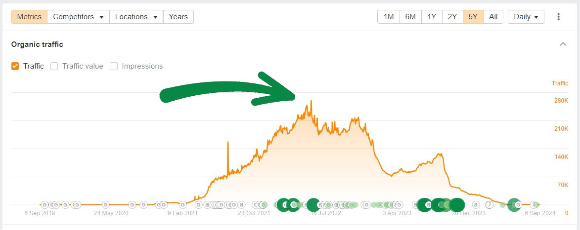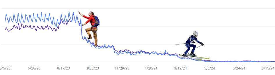 When the first HCU update rolled out that month, we took a hit. And ever since then it’s been a slow death by a million cuts that finally culminate in us basically going to zero with the September 2023 HCU update.