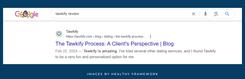 There are two instances to look at here. First, brands writing reviews about their competitors. Here’s an example in our space. Check out these articles written by matchmaker Tawkify.