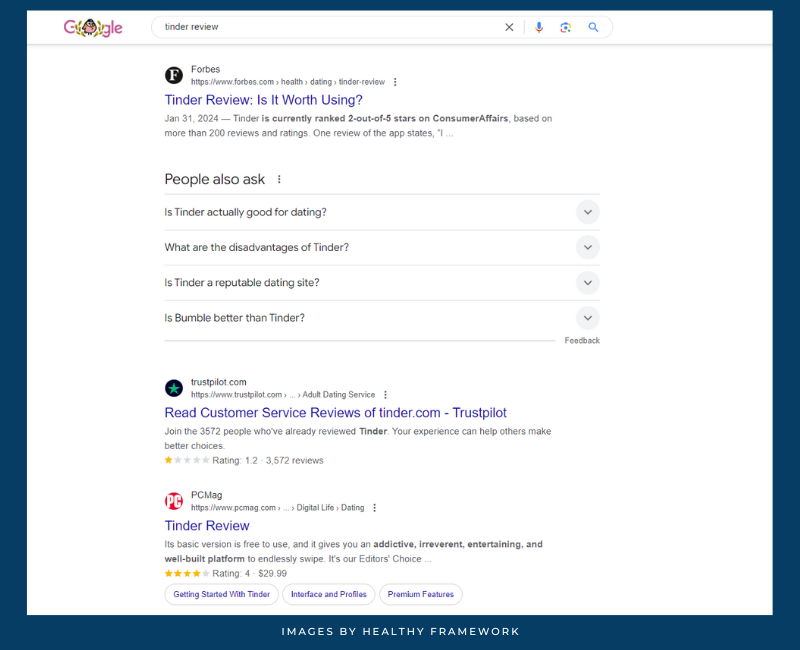 There’s so much more to the story, but that’s enough for us to get into our discussion. All you need to know to read on is that Healthy Framework is a website that writes about and reviews dating apps and that we were crushed by the HCU and have not recovered.