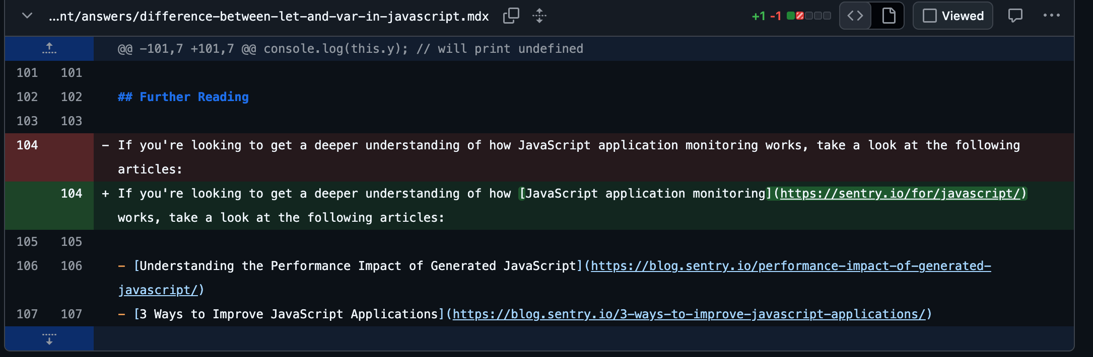 The Wow Moment: After I set it up, it updated 18 links in one PR. (caveat, we have most of our site in github and out of our CMS which makes this all work)