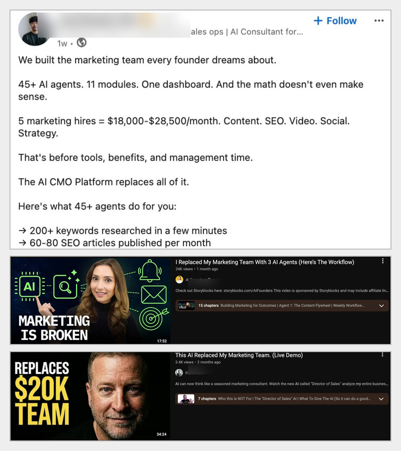 These used to make me feel like I was behind, but it turns out there’s a huge gap between these types of posts and what actual growth teams are building. Most of the “I replaced my marketing team with agents” content is engagement bait or small hacks. The people I know who are building useful things aren’t posting about replacing anyone, they’re just solving real problems and sharing their tools with their team.