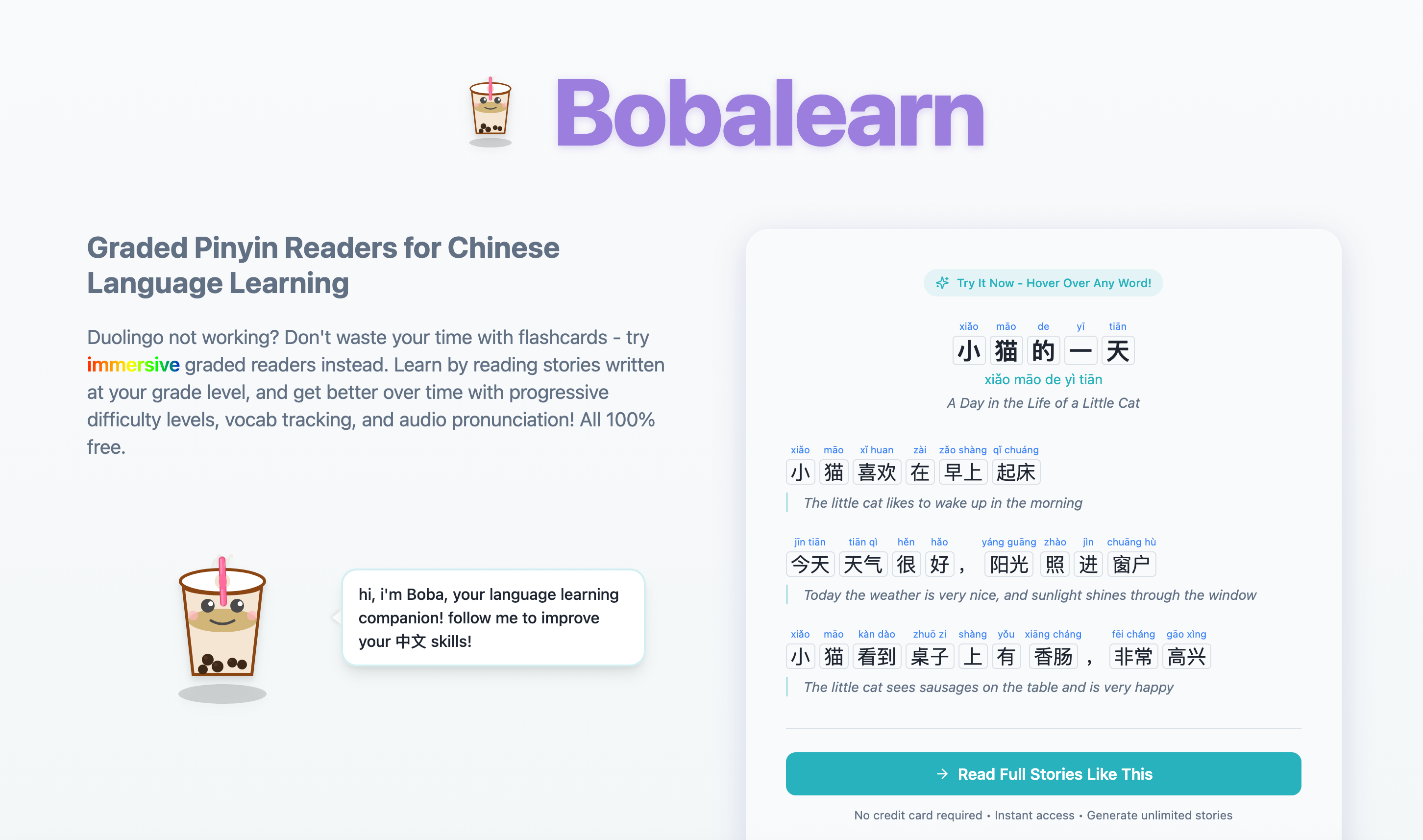 I spent roughly the last week (Oct 30 to now) vibe coding BobaLearn