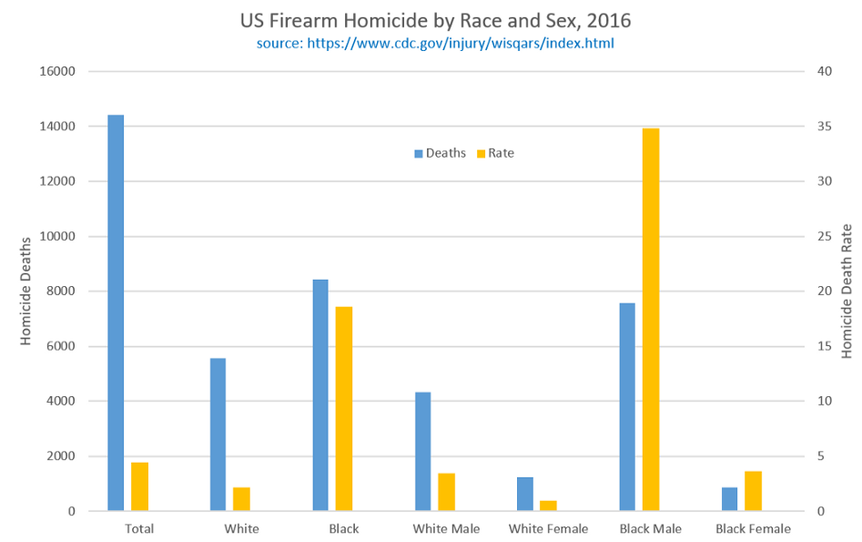 Let’s dig a bit. We pointed out over a year ago in our “solutions” article that the main problem with homicide, demographically speaking, was within the black community, and the rate numbers for this are outrageous: