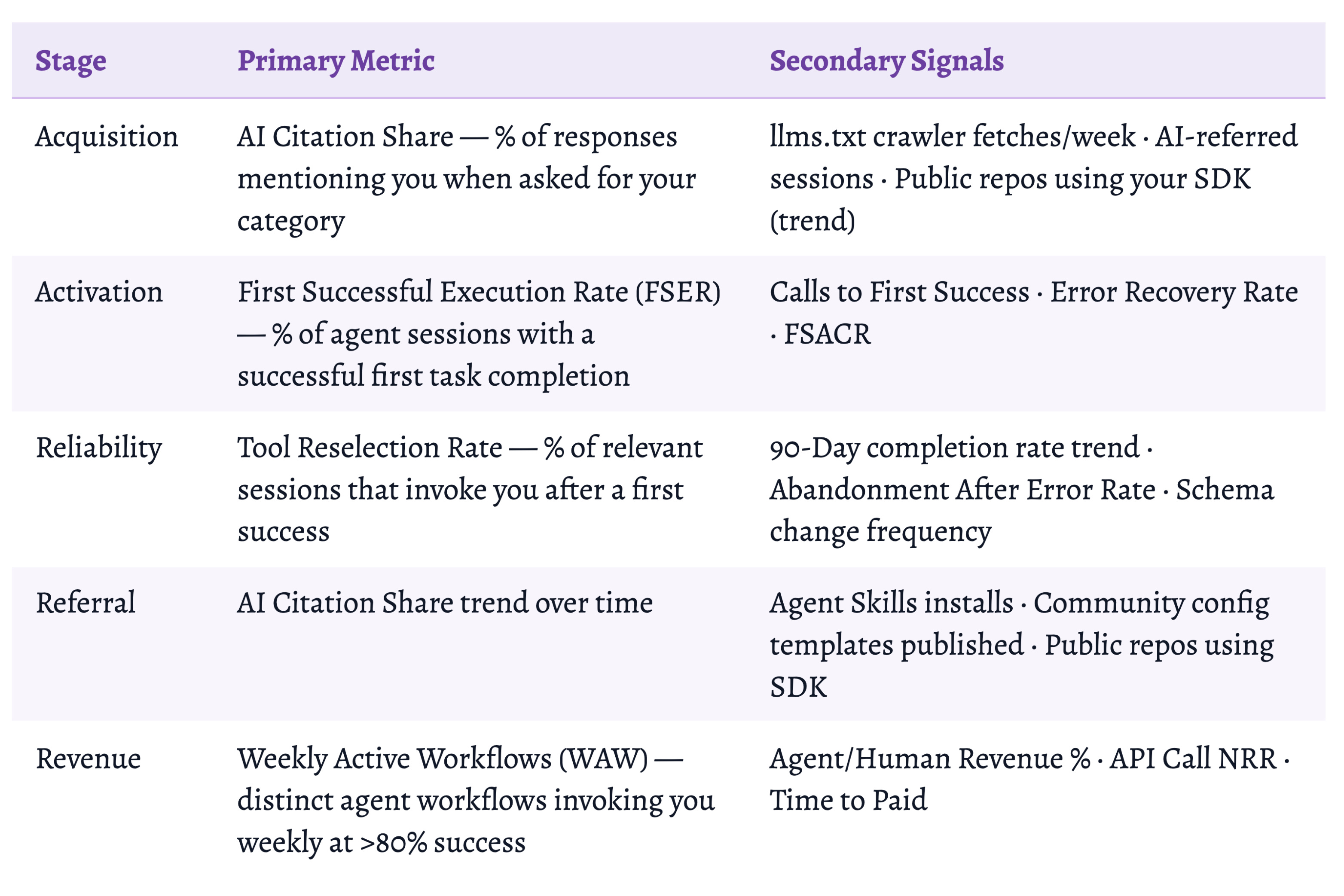“First Successful Execution” is the first time an agent completes a task using your product end-to-end without a human intervening. It’s invisible, no session recording, no celebration screen. You have to instrument it.