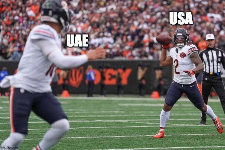 (A lengthy but important disclosure: this trip was sponsored by the UAE Embassy, meaning they paid for our flights, hotels, most meals, and helped arrange all the meetings. The flight was comfortable and the hotels were very fancy, though our schedule was also so packed on some days that we had 10 minutes to eat breakfast, skipped lunch, and barely had time to go to the bathroom. This generosity should not go unrecognized and unappreciated. But at no point during the trip did I feel pressured or expected to “write something nice” about my experience, or write anything at all. Most people on the trip did not know I have a newsletter with more than 10,000 subscribers. When our official agenda was concluded on each day, I was left alone to my own devices to explore the country however I preferred without any restrictions. All meetings were conducted under Chatham House rule, so whatever insight I share in this post and future posts about this trip will not be attributed to anyone or any institution. It is an aggregation based on my notes and interpretations, so any mistake I make is mine and mine alone.