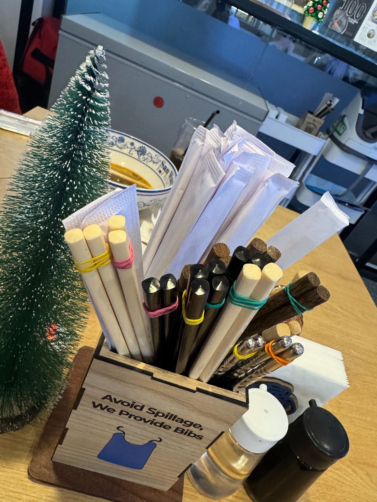 Until Dubai, I have never seen a place that offered this many types of chopsticks all at once for the customer to choose from. As a lifelong chopsticks user, it doesn’t get more inclusive than this. And I doubt this modest restaurant received a decree from the Crown Prince to be more inclusive with its chopsticks offering. It was organic.