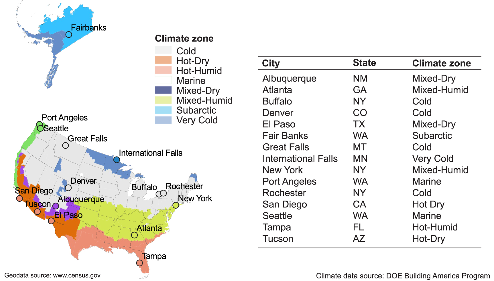 Figure 2. Overview of the simulated locations and climate zones.