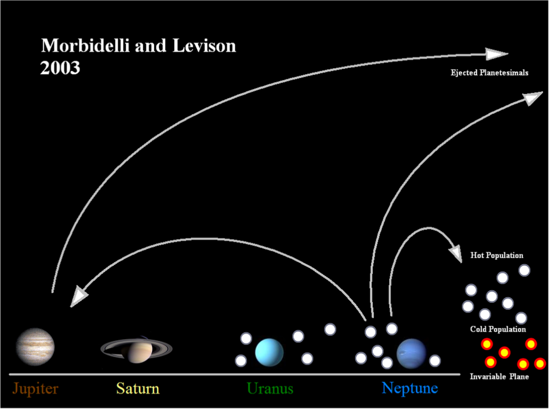 Figure 4. Recreation of Figure 1 from Morbidelli & Levison (2003), which was a graphical explanation of the Gomes (2003) model for the formation of what is now known as the scattered disk or Kuiper scattered disk.