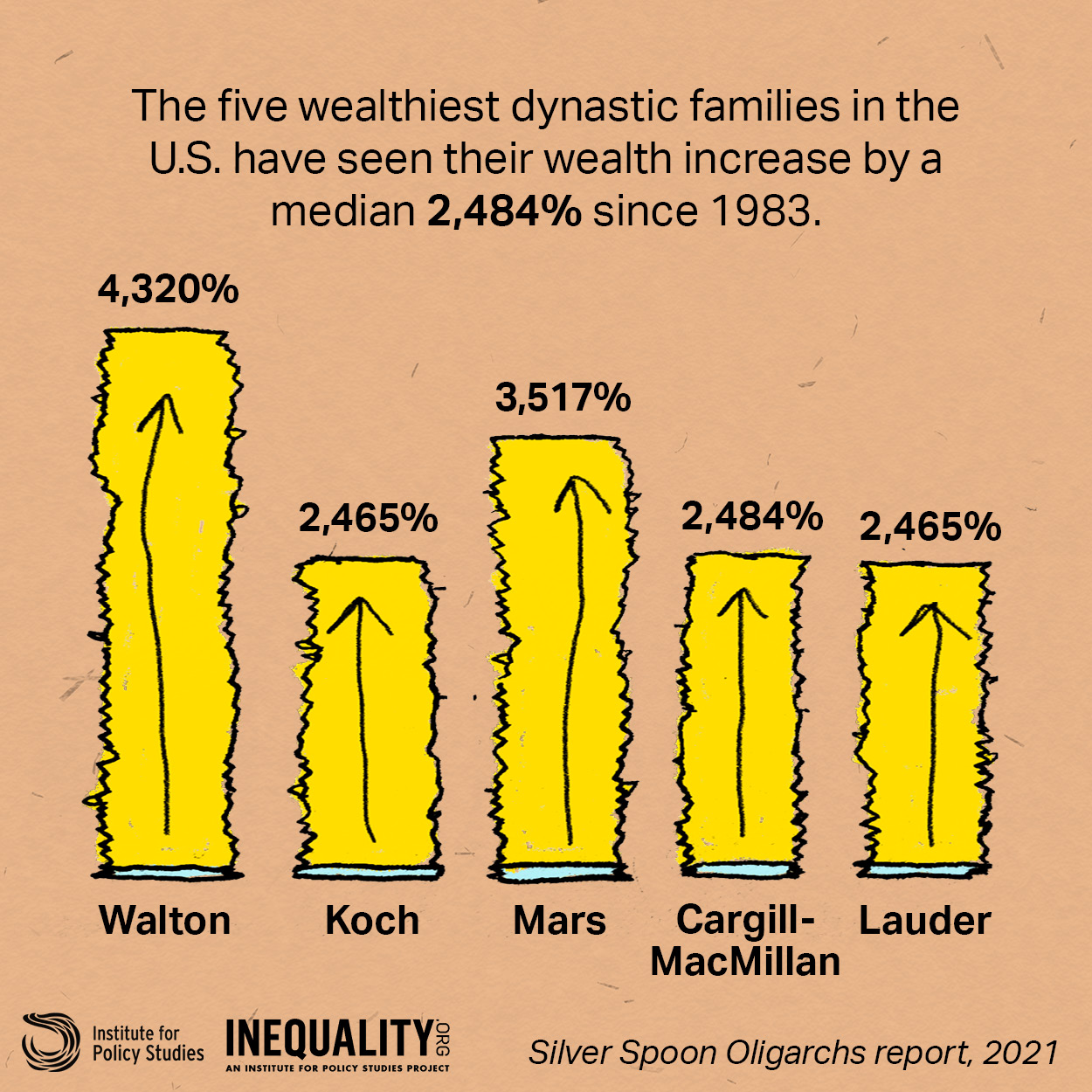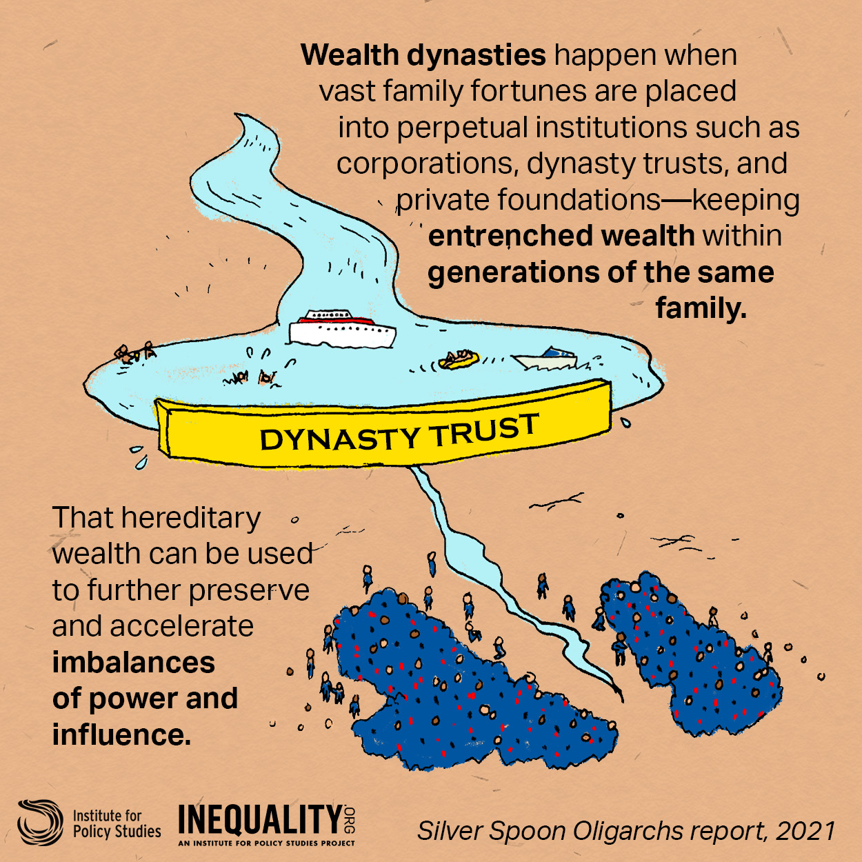 America’s dynastic families, both old and new, are deploying a range of wealth preservation strategies to further concentrate wealth and power — power that is deployed to influence democratic institutions, depress civic imagination, and rig the rules to further entrench inequality. This tax avoidance means less support for the infrastructure we all rely on to preserve our health, safety, and quality of life.