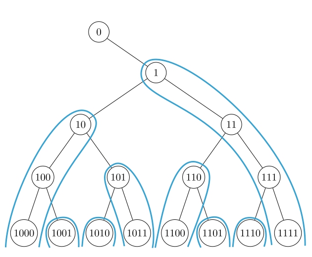 We see that there are 16 nodes in the tree, so whatever ID-assignment scheme we build must account for 16 unique IDs by the time we have added four nodes.