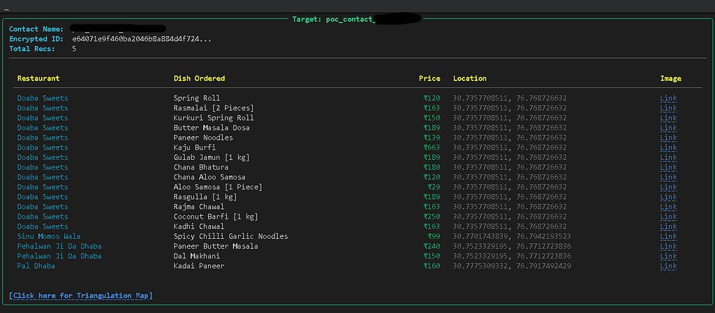 As a result this turns Zomato into an “Enrichment Engine.” An attacker starts with just a phone number from an old leak, and Zomato effectively updates that record with the victim’s approximate location and profile.