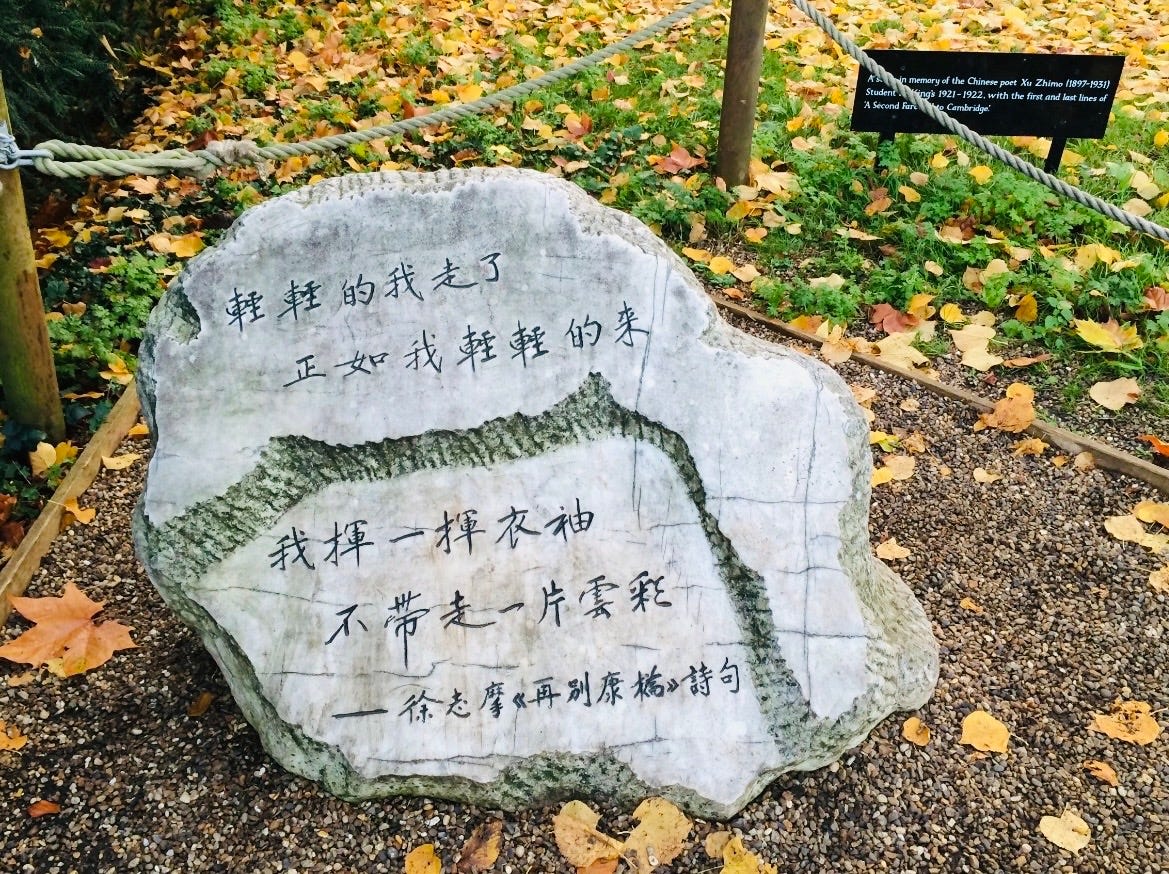 Take his most famous poem, Saying Good-bye to Cambridge Again (再别康桥). In Classical Chinese, a farewell to a river might be compressed into four dense characters: Liu shui, li ren (流水,离人 | Flowing water, departing person). But Xu wrote: