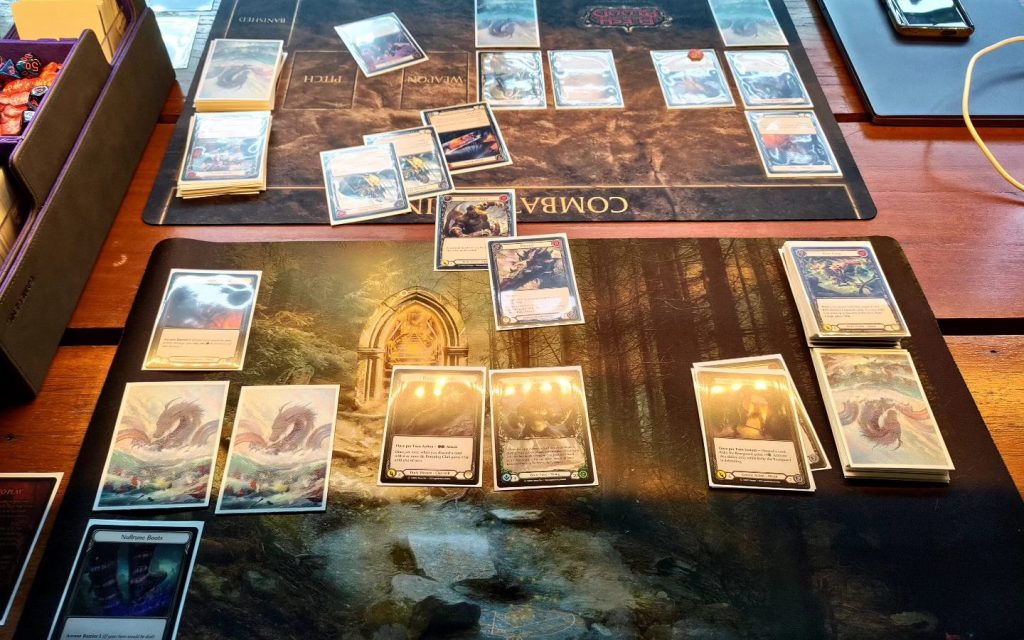 These days, my TCG attention is thoroughly entrenched in Flesh and Blood (FAB). It excels so much at everything I mentioned earlier that it got me to willingly jump into a competitive event environment: something that I never honestly thought I could fit into (see “fair-to-middling” player assessment above). It keeps me thinking about how to play, what to play, and whom to play with. There is a definite buildup of habit-inducing behavior—never mind how much money and mindspace I’ve committed to it.