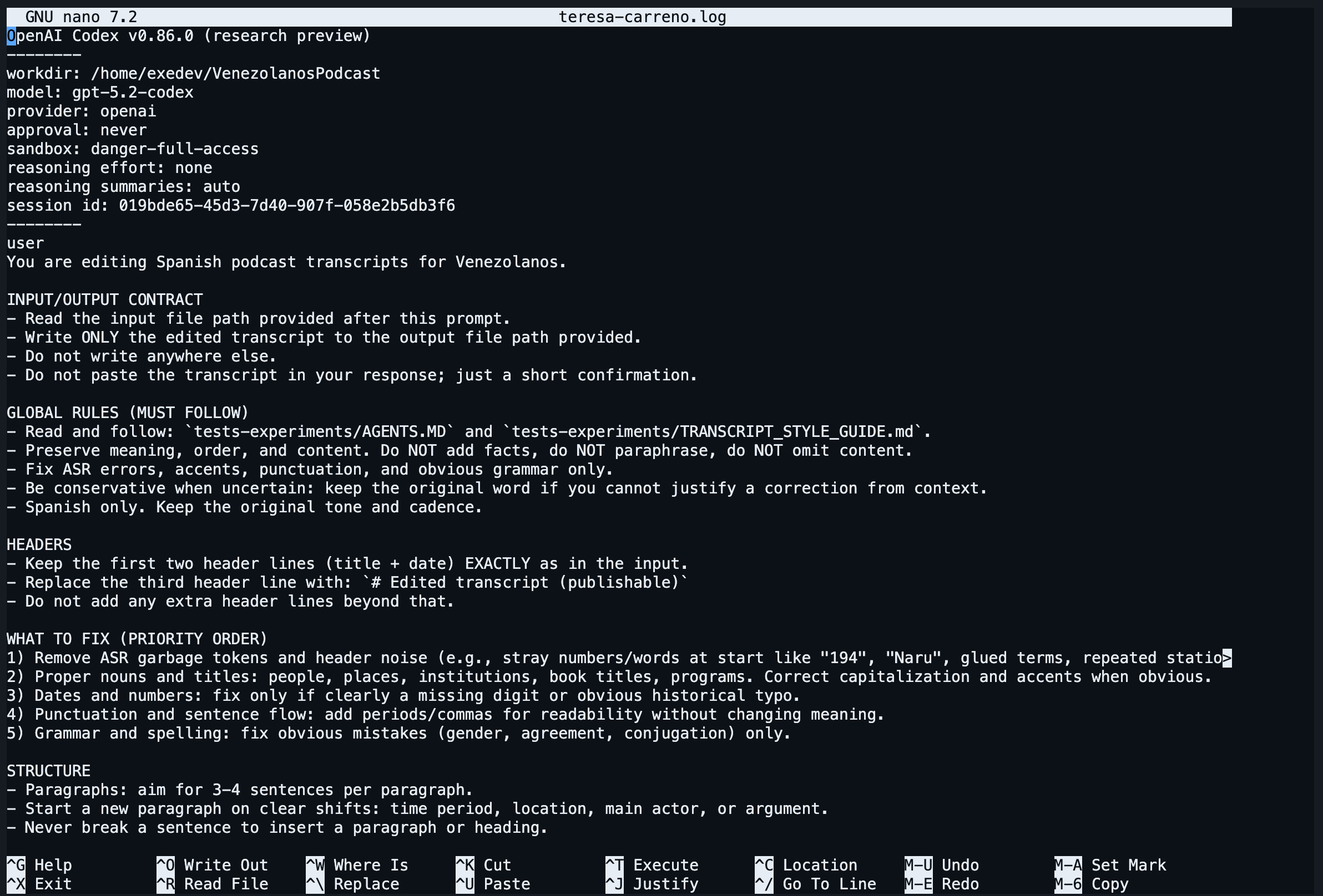 You are editing Spanish podcast transcripts for Venezolanos.
