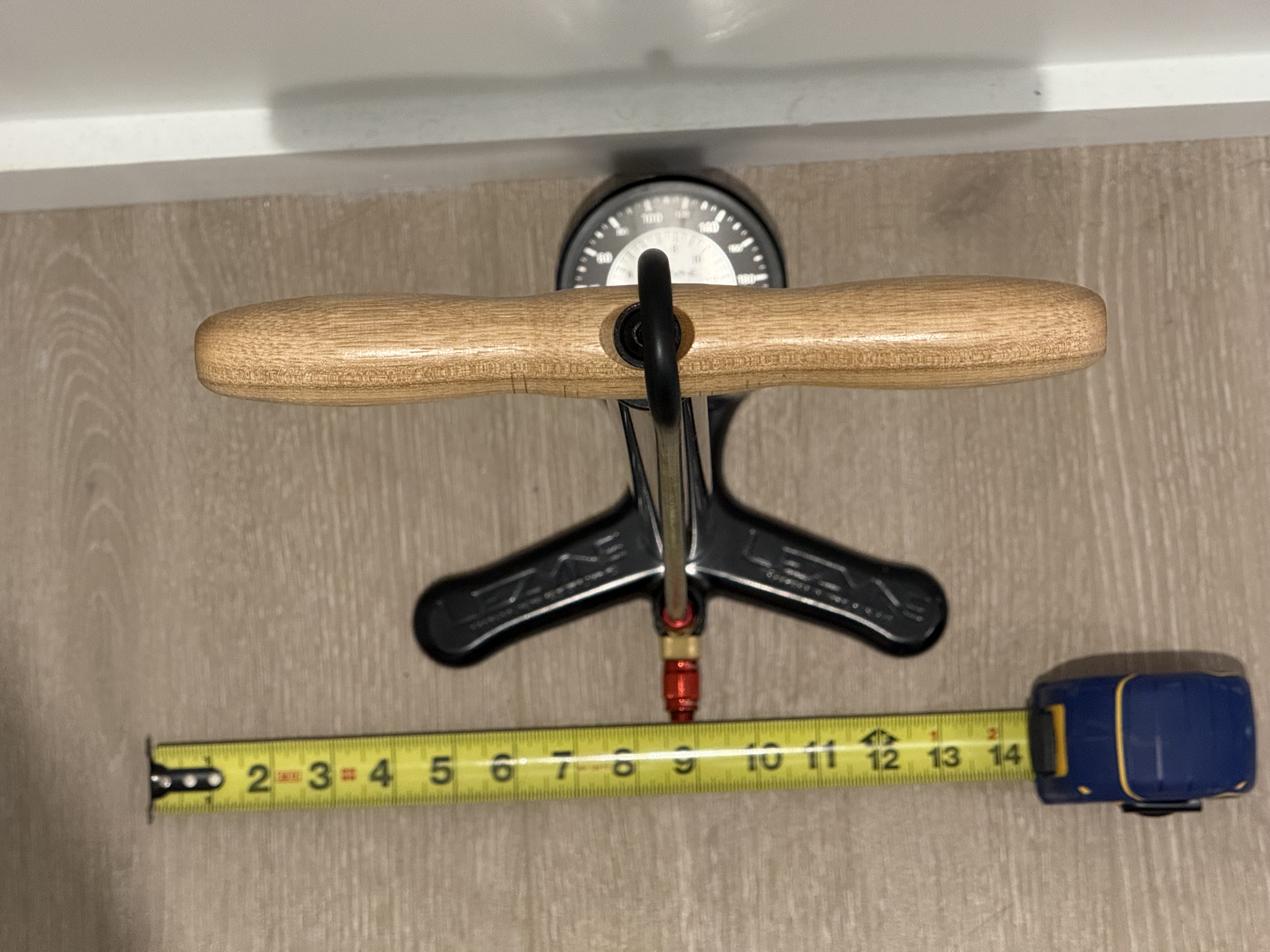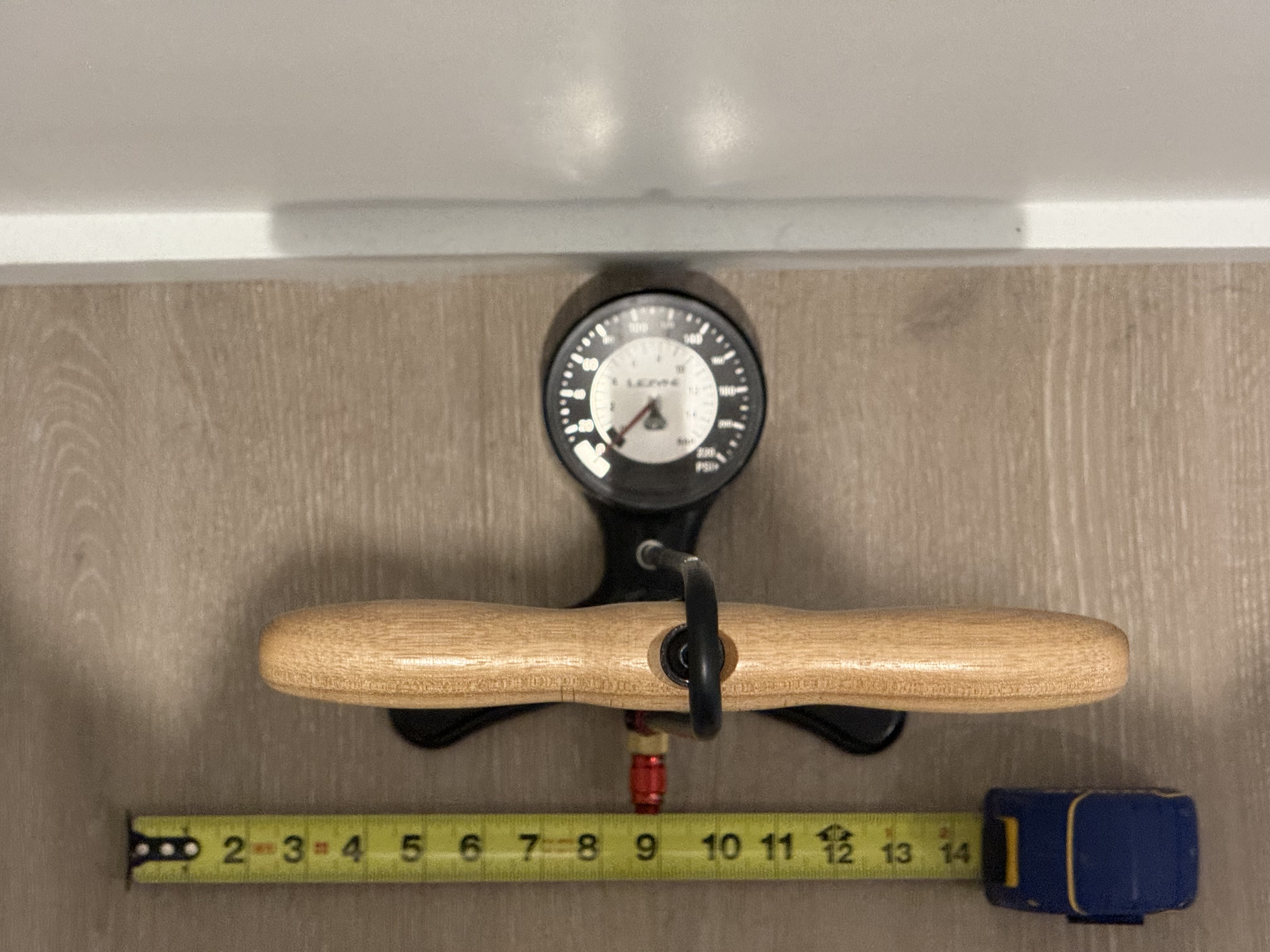 Design a wall mount for this Lezyne Steel Floor Drive bike pump that I can 3D print. […] It should hold the bike pump by the handle, so that the bike pump hangs with the dial facing outward. It should hold the pump far enough away from the wall that the valve (which sticks out from the bottom of the pump) doesn’t touch the wall. Orient and position the design so that the wall is the YZ plane, and the mount protrudes into the positive X direction and is symmetric about the XZ plane. […]