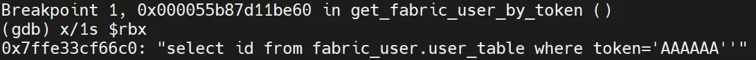 snprintf(s, 0x400u, "select id from fabric_user.user_table where token='%s'", a1);**