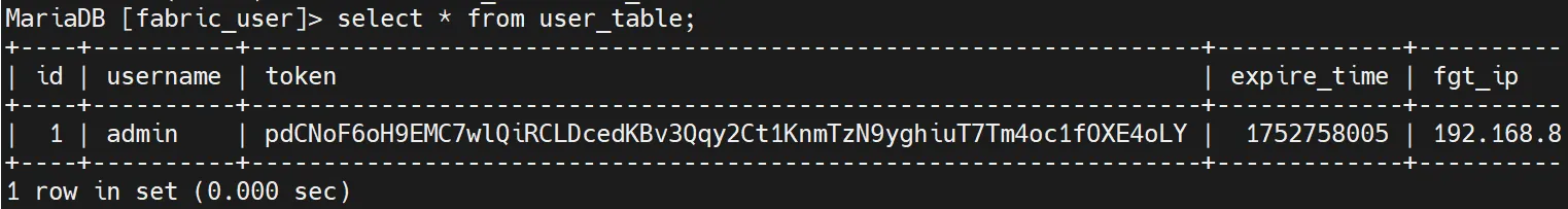 Looking through the schema for fabric_user.user_table, one column stood out immediately: token. Perfect.
