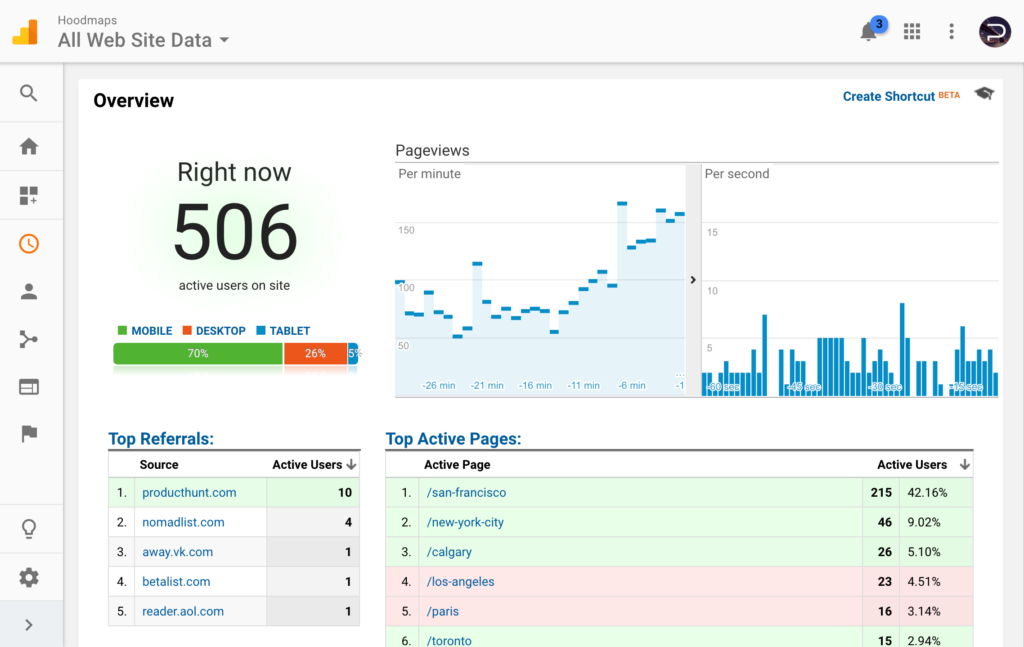 That worked. We knew it worked because suddenly in Google Analytics we saw the real-time users rise: